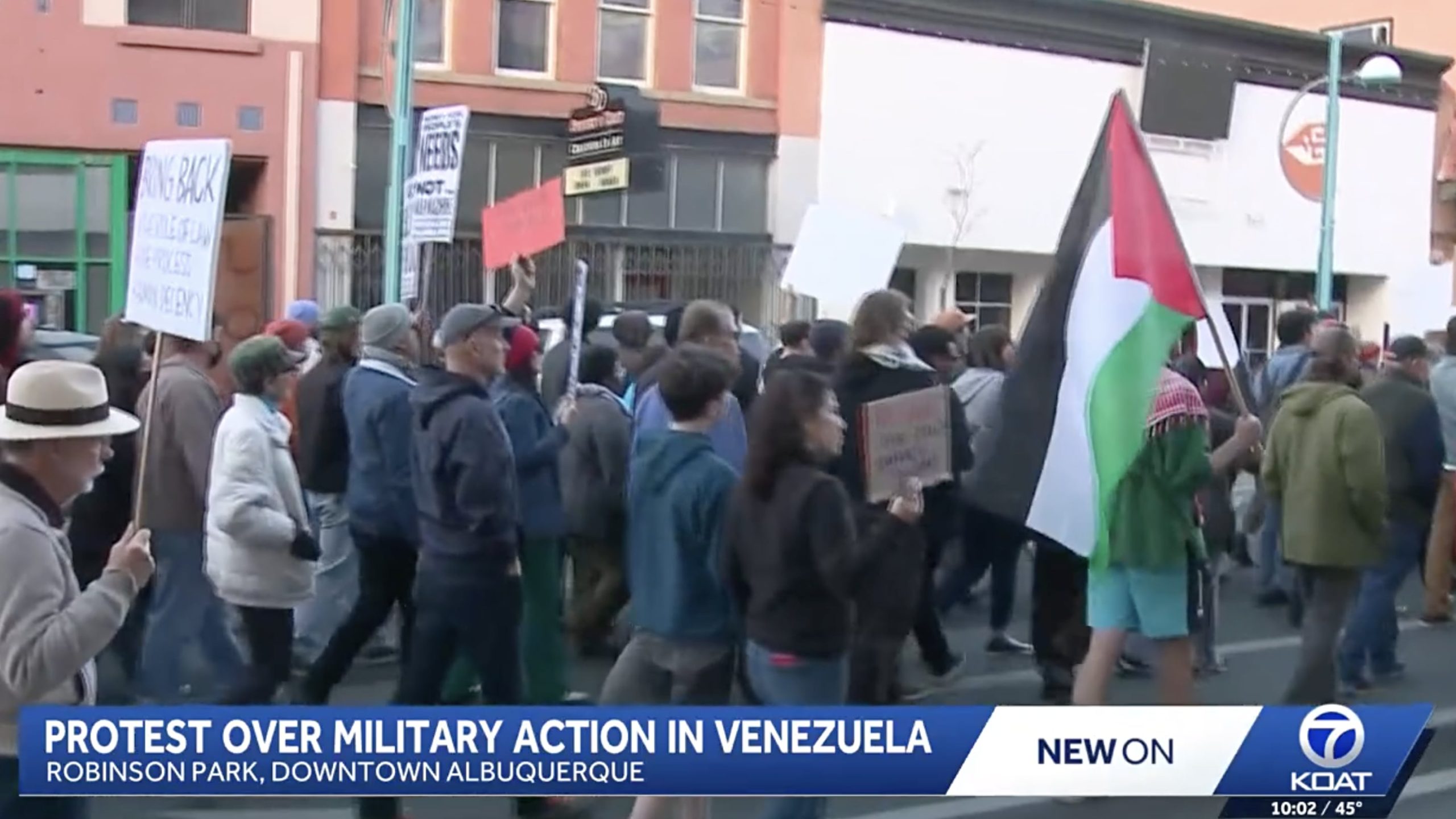 “Regardless of what Maduro has done, I don’t think the situation is just, and I don’t think America has the right to act as global policemen,” one Albuquerque protester told KOAT during a march that began near Robinson Park and continued toward Civic Plaza, despite many of them supporting armament of Ukraine against Russia’s invasion and other global wars. The actions in Venezuela were not in any way acts of war, and if they were, there would be counter-offensives. However, those don’t exist.